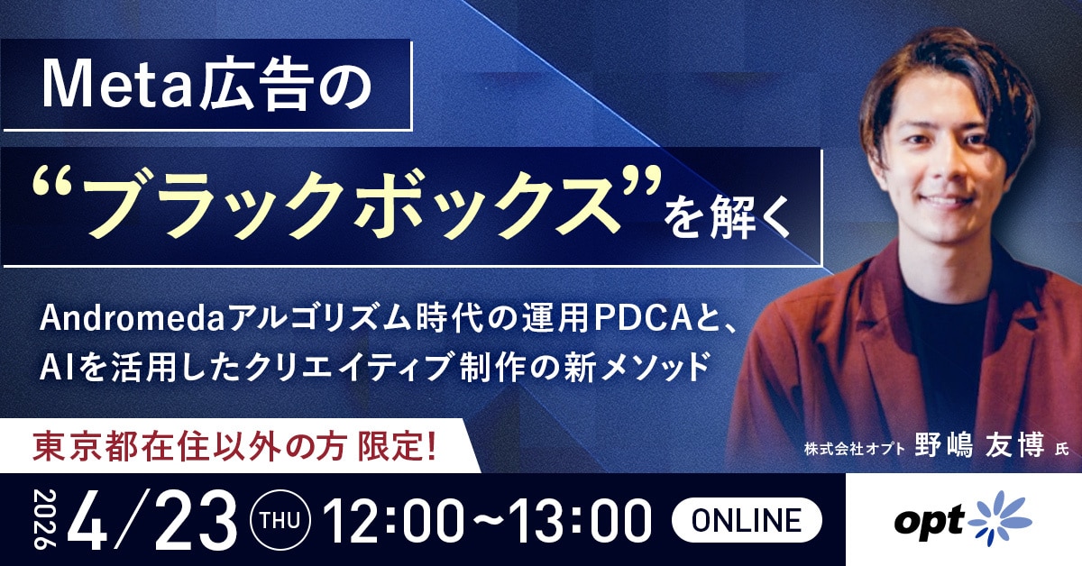 【東京都外の企業さま限定】 Meta広告の"ブラックボックス"を解く。 Meta Andromedaアルゴリズム時代の運用PDCAと、 AIを活用したクリエイティブ制作の新メソッド