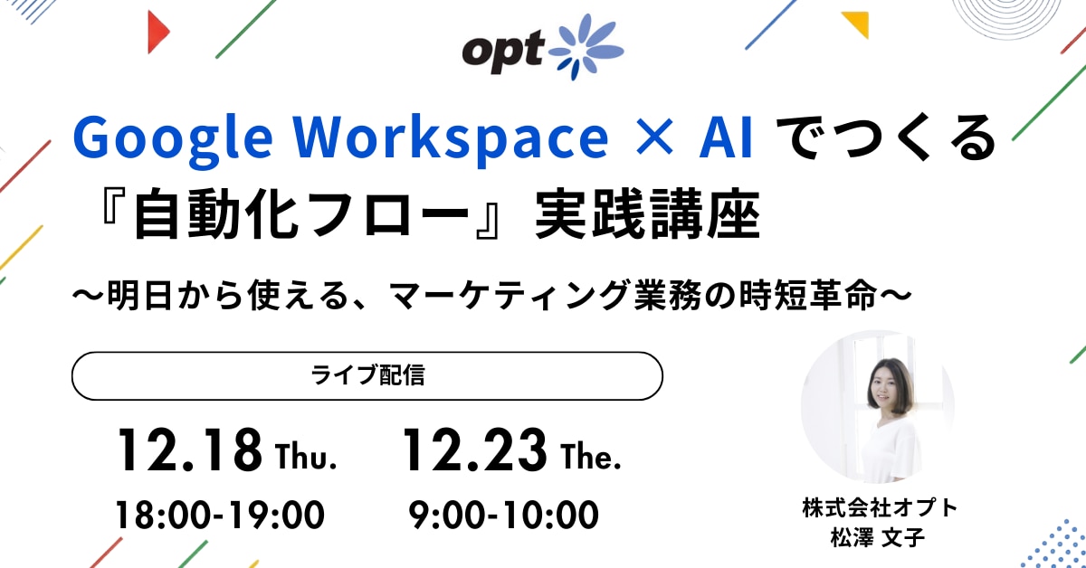 | Google Workspace × AI で作る「自動化フロー」実践講座 ~明日から使える、マーケティング業務の時短革命~ |